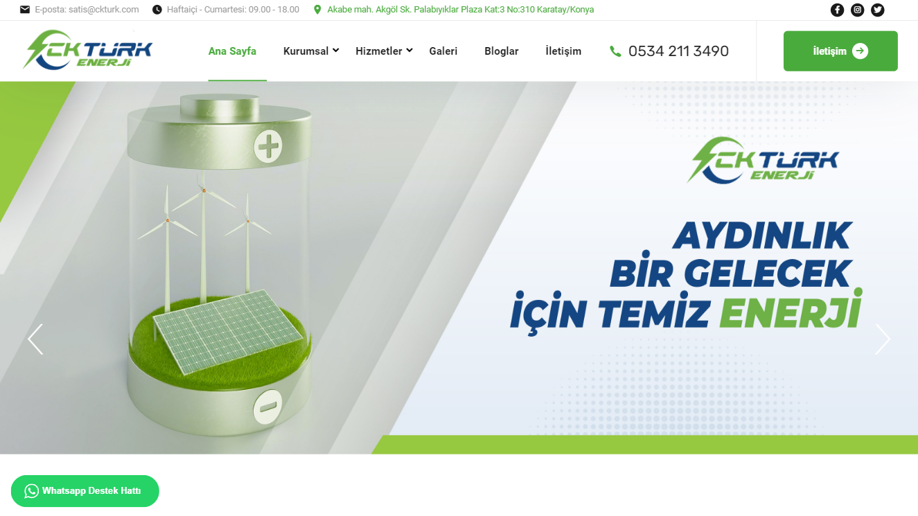 Güneş enerji panelleri satışı yapan firma için hazırlanmış tanıtım amaçlı kurumsal web sitesi.