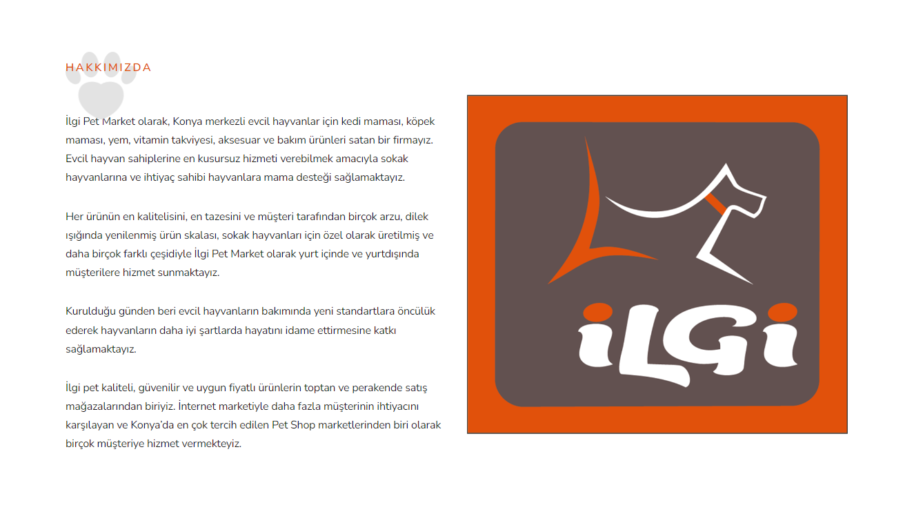 Online pet shop sitesi. Satış olmadan ürün tanıtımı.