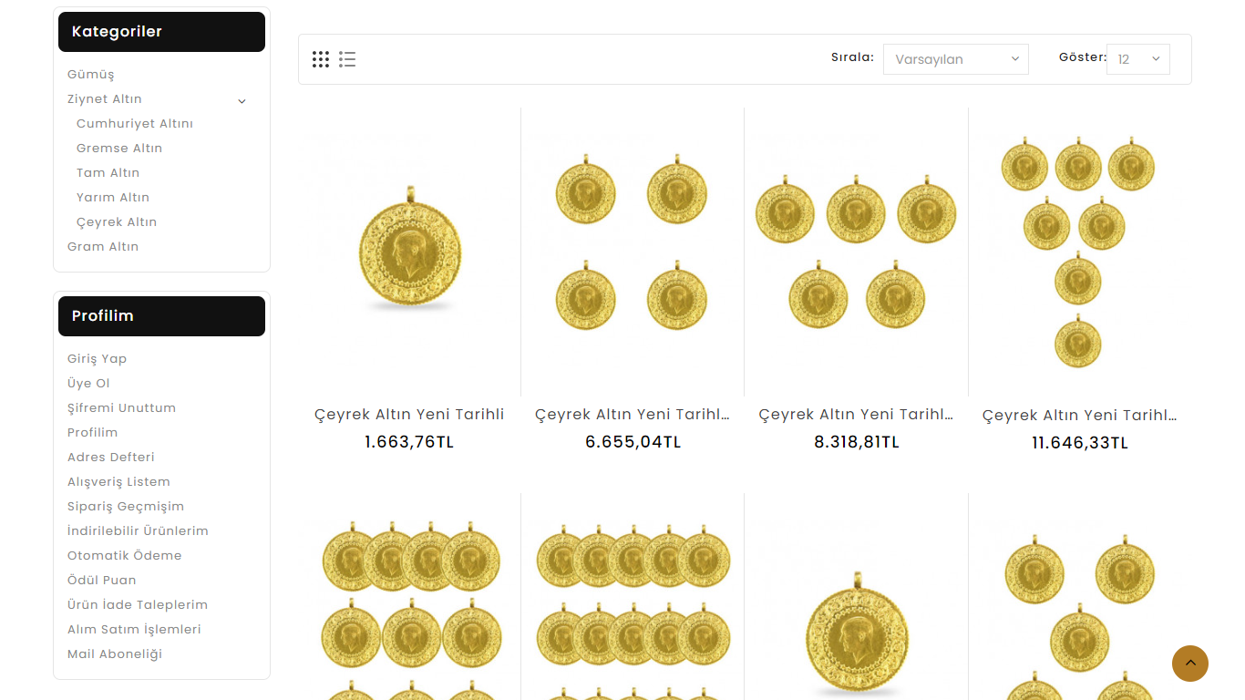 Takı, mücevherat, altın, gümüş vb. ürünler satışı yapılan e-ticaret web sitesi.