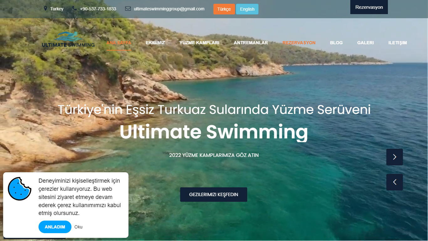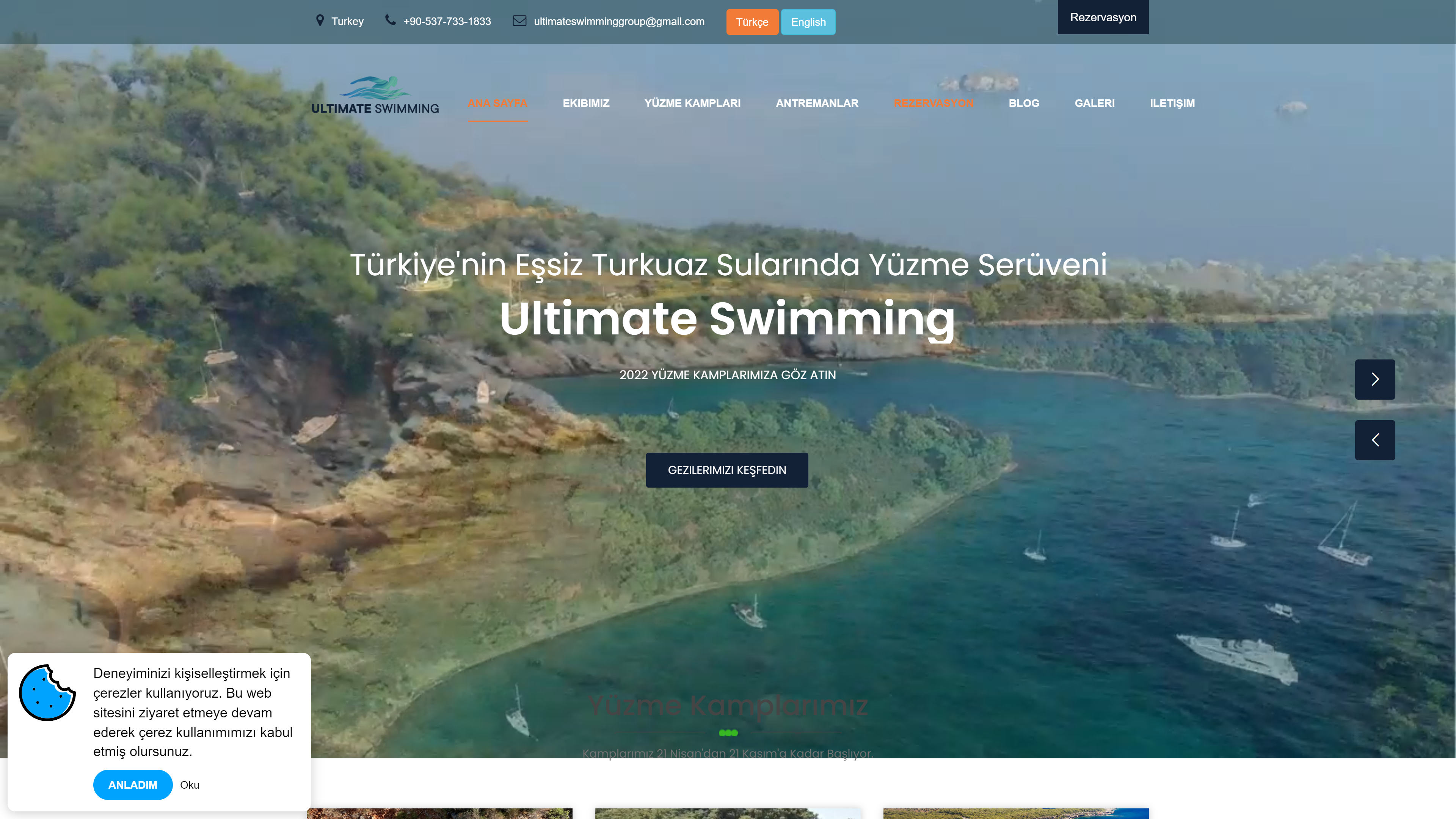 Antalya merkezli, yüzme kampları, antremanlar içeren rezervasyon sitesi.